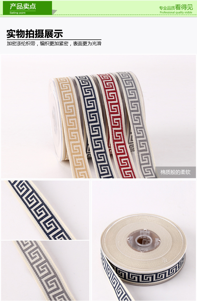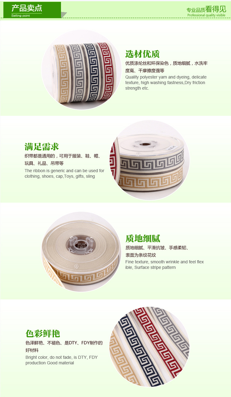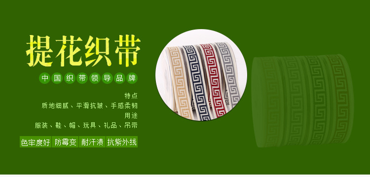 主營產品:提花織帶,韓國織帶,編織帶,仿尼龍織帶,緞帶/羅紋帶,子母織帶,熱轉印織帶,間色織帶
